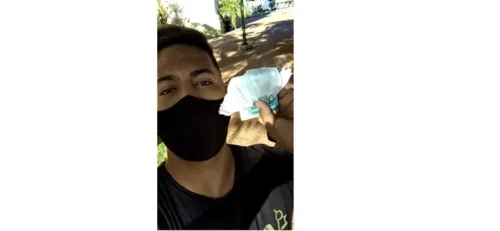 "Pessoal encontrei enrolado em uma sacola todo esse dinheiro e o cartão, estou gravando esse vídeo para encontrar o dono. Provavelmente a pessoa sacou o auxílio e acabou perdendo. Se alguém souber de quem é o dinheiro, por favor só me procurar na minha barbearia" disse no vídeo.