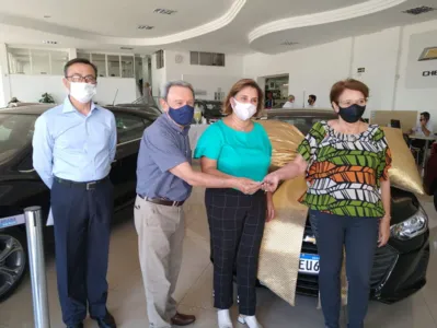 A entrega aconteceu na Rua Guarapuava, na Concessionaria Chevrolet, Apucarana Auto Peças. Maria do Carmo Pereira Mendes Matias, da Carmo Mendes, loja onde a ganhadora comprou, também falou sobre a entrega: