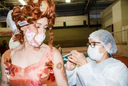 Caracterizado de Dona Hermínia, personagem de sucesso do ator Paulo Gustavo que comoveu o Brasil após morrer vítima do novo coronavírus, ele não passou despercebido. "Foi um momento muito emocionante pra mim, e eu queria muito homenagear as pessoas que infelizmente não conseguiram receber a vacina. Resolvi me caracterizar de Dona Hermínia, para homenagear o ator falecido e todas as outras pessoas que poderiam ter tomado a vacina antes. Não fiz para me aparecer, e sim para incentivar as pessoas, reforçar a importância da vacina, valorizar o SUS", disse.