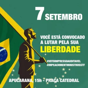 O feriado de Independência do Brasil, 7 de Setembro, será marcado por diversas manifestações em todo Brasil e em Apucarana também haverá protesto em prol da liberdade e a favor do presidente Bolsonaro.