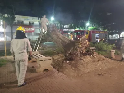 Uma árvore de grande porte caiu na região da Praça Rui Barbosa no centro de Apucarana na noite desta terça-feira (20). O susto foi grande. Os Bombeiros foram chamados por volta das 19h30.