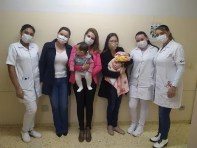 Em comemoração ao Dia Mundial da Doação de Leite Materno, a equipe do Banco de Leite, do Hospital da Providência, reuniu a doadora Thaís Prevital e Luiza, de Apucarana, um dos bebês que durante internamento na UTI Neonatal, do Hospital Materno Infantil, receberam sua doação de leite.