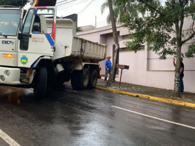 Um caminhão da prefeitura de Apucarana, que descia a Rua Des. Clotário Portugal, sentido a Unidade de Pronto Atendimento (UPA), atingiu um poste. Apesar dos dados, nenhuma pessoa ficou ferida.