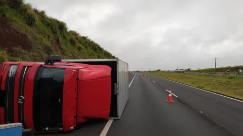 Caminhão tomba após tentativa de assalto em Apucarana