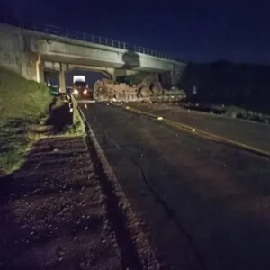 Caminhão tomba e bloqueia BR-376 na Vila Reis em Apucarana