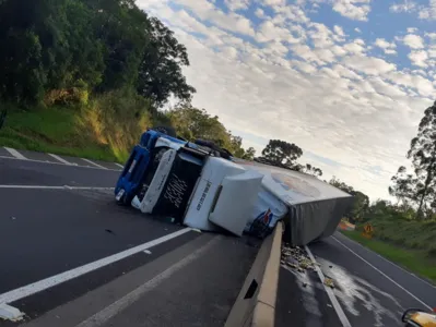 No início da manhã deste sábado (19), na altura do do KM-311, da Serra do Cadeado entre Mauá da Serra e Ortigueira um caminhão furgão tombou às margens da pista com produtos para entrega em supermercados.