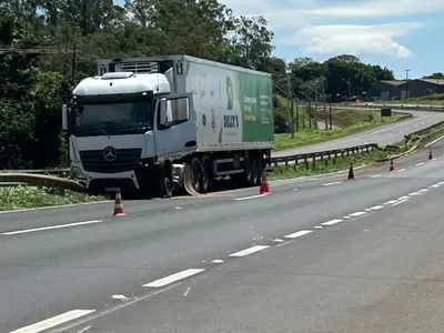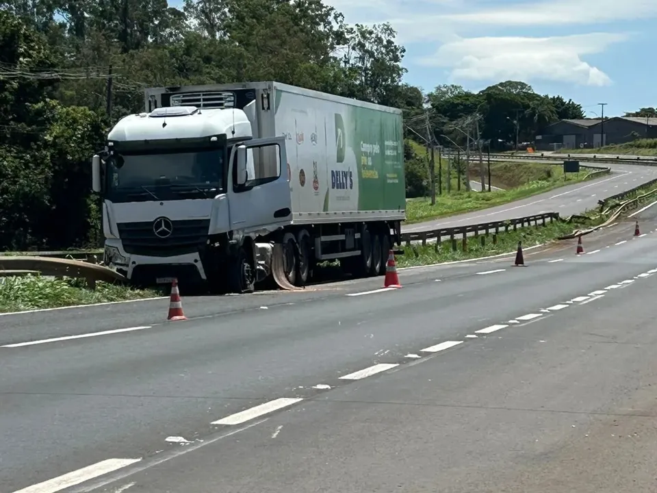 Carreta perde o controle e causa bloqueio parcial na BR-376 em Apucarana