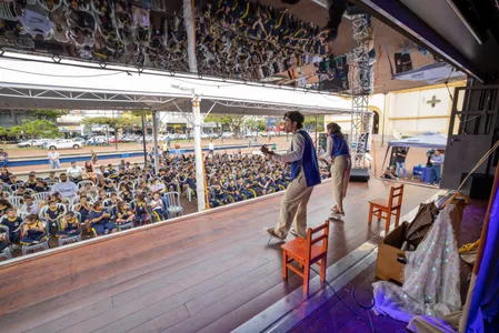 Com uma apresentação especial direcionada a alunos da rede municipal de ensino e alunos dos terceiros anos que participam do projeto “Bonetizando: de Apucarana para o Mundo”, a Carreta Sesi Cultura marcou nesta quarta-feira (1°), na Praça Rui Barbosa, o início da programação do 1º Apuca Kids. Uma promoção da Secretaria de Cultura e Turismo da Prefeitura de Apucarana, o projeto municipal vai oferecer, ao longo deste mês, 35 atividades gratuitas voltadas às crianças em diferentes bairros da cidade e também na região central.
