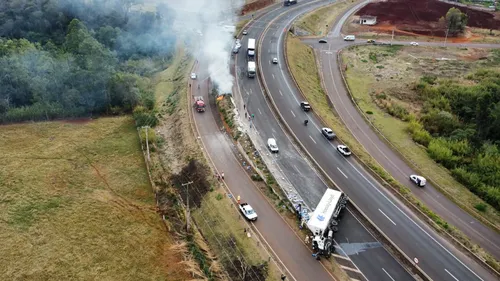 Acidente acabou provocando um incêndio ambiental no local; veja o vídeo