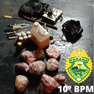 Um Fiat/Uno foi apreendido na madrugada desta terça-feira (18), com nove peças de carne, 10 facas, um afiador de facas, um pé de cabra, sete latas de cerveja, um kit de cortar cabelo, um XBox e uma furadeira, na madrugada desta terça-feira (18), no Núcleo Habitacional Dom Romeu Alberti.