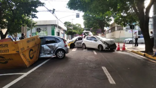 Carros envolvidos em acidente na área central são removidos; vídeo