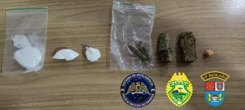 A equipe abordou o suspeito, que estava acompanhado de uma mulher, na garupa da motocicleta. No bolso da blusa da mulher, os policiais encontraram uma porção de maconha. Na abordagem, o casal teria informado que havia mais drogas na casa, onde foram encontradas as porções de crack e de cocaína.