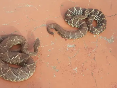 Duas cobras cascavéis foram capturadas na Travessa Luiz Martins na Vila Reis em Apucarana na tarde de terça-feira (27).