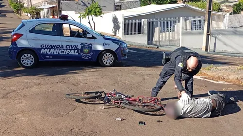 Um ciclista de 37 anos ficou ferido em um acidente com um carro em Apucarana. O estado de saúde não é grave, mas ele foi encaminhado ao hospital