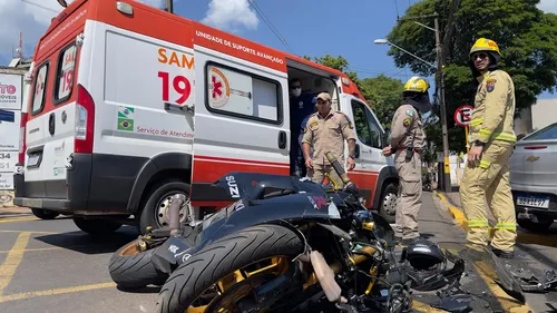 Colisão entre carro e moto no centro de Apucarana mobiliza equipes de socorro