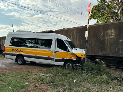 Colisão entre van escolar e trem deixa uma pessoa ferida em Apucarana