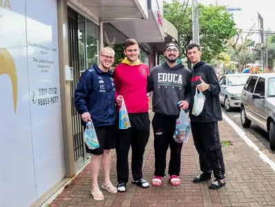 Quatro atletas da equipe de handebol da Universidade Estadual de Ponta Grossa (UEPG) aproveitaram a folga da manhã desta segunda-feira (18) para passear no comércio, compraram alguns mantimentos e fizeram elogios ao refeitório disponibilizado pelo Município e à estrutura das praças esportivas. “A comida é muito boa, fomos bem recebidos aqui na cidade e os ginásios são bons”, conta Vinícius Busnardo de Souza, que é acadêmico de Direito e estava acompanhado dos acadêmicos de Educação Física Lucas Fontana, Heitor Licodiedoff e Pedro Cherobin. “A seleção de handebol é formada por atletas de vários cursos e estamos jogando nossas partidas do Ginásio Áureo Caixote”, informa o atleta Lucas.