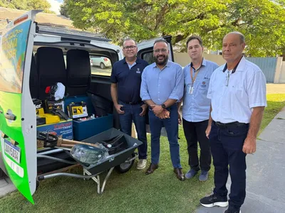 Durante o encontro, todos posaram para uma foto em frente à van zero quilômetro recém-chegada ao Núcleo, veículo destinado ao transporte dos detentos que atuarão nas escolas. Também foram apresentados os equipamentos que serão utilizados pelas equipes, como roçadeiras, motosserras e ferramentas específicas para manutenção predial.