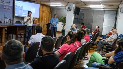 Dirigentes da Copel, juntos com o prefeito Junior da Femac e o diretor-presidente do Idepplan, Carlos Mendes, se reuniram nesta quinta-feira (1), no salão nobre da prefeitura, com representantes de 15 empresas de telefonia e de internet – de um total de 26 – que operam em Apucarana.