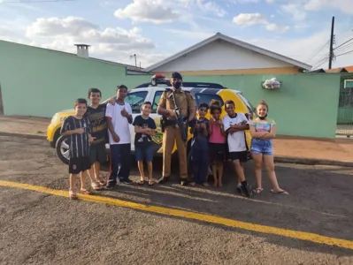 Crianças que brincavam em um parquinho do Jardim Ponta Grossa, foram surpreendidas por policiais militares de Apucarana, nesta terça-feira (26). A turminha se divertia, quando a PM abordou um suspeito nas proximidades do local e os pequenos ficaram assustados e curiosos com o que aconteceu.
