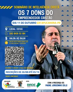 A Diocese de Apucarana, através da Pastoral do Empreendedor, vai realizar o Seminário de Inteligência Cristã no dia 11 de outubro de 2025. Com o tema "Os Sete Dons do Empreendedor Cristão", o evento busca unir propósito, prosperidade e espiritualidade no mundo dos negócios.