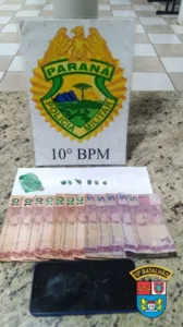 As drogas, o dinheiro e um celular foram apreendidos pela Polícia Militar. Os dois criminosos foram presos e encaminhados para a 17° Subdivisão Policial de Apucarana.