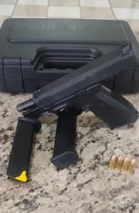 De acordo com o Soldado Pacheco, a equipe policial recebeu uma denúncia de que o condutor estaria rondando a cidade com uma arma no veículo. "Nós localizamos o suspeito e realizamos a abordagem. Após questionado se tinha uma arma, ele informou que era atirador e disse que tinha uma 9mm em seu poder, mas não estava em seu veículo, porém, após a varredura no automóvel, foi localizado no porta luvas uma pistola Taurus", contou.