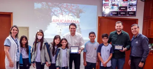 Alunos do 5º ano da Escola Adventista entregaram presentes para o prefeito e vice-prefeito de Apucarana