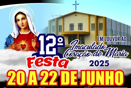 A 12ª Festa em Louvor ao Imaculado Coração de Maria acontece na sexta (20), sábado (21) e domingo (22), na Paróquia Imaculado Coração de Maria, no Núcleo Habitacional Dom Romeu Alberti, em Apucarana (PR). Assista o vídeo no final do texto