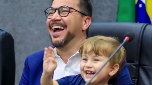 Um momento inusitado e cheio de ternura que aconteceu na Câmara de Apucarana viralizou nas redes sociais nesta semana. Durante discurso na posse do vereador Odarlone (PT), o deputado estadual Arilson Chiorato (PT) tentava manter a seriedade, mas quem chamou a atenção mesmo foi o pequeno Heitor, seu filho, que acompanhava a sessão no colo do pai.