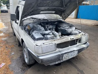 Um veículo modelo Fiorino pegou fogo na tarde desta quinta-feira (23), em Apucarana. O motorista, Rafael Chacon, contou que estava realizando a entrega de ovos na Rua Pará, no Jardim Apucarana, quando o incêndio começou.