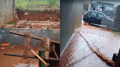 A forte chuva registrada na tarde de sábado (7) em Apucarana (PR) deixou grandes prejuízos. Na casa da Criscielen Rossi Mariano, 40 anos, moradora do Residencial Interlagos, a chuva invadiu e destruiu móveis e eletrodomésticos após o muro de um terreno aos fundos ser derrubado.