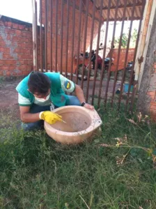 Já a equipe do Meio Ambiente está vistoriando minas de água da região, também num trabalho de eliminar criadouros do mosquito. O trabalho das duas equipes vai se estender ao longo do dia.