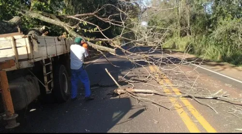O motorista de caminhão precisou trafegar pelo acostamento para desviar dos galhos. Condutores acionaram a prefeitura, que encaminhou uma equipe, que já providenciou o corte e remoção dos galhos.