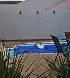 Um morador inusitado surpreendeu a equipe de limpeza de uma residência no Jardim Iguatemi, em Apucarana, no norte do Paraná na manhã desta quarta-feira (1). Um ganso foi flagrado nadando tranquilamente na piscina da casa enquanto a proprietária estava fora. O caso ocorre pouco tempo após um episódio semelhante envolvendo uma capivara na cidade.