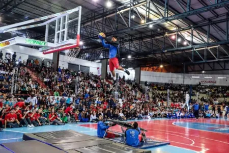 Grupo realiza um show de enterradas e acrobacias de basquetebol