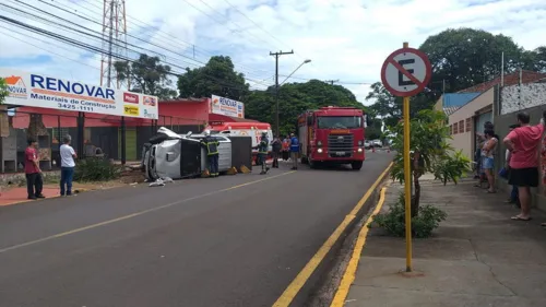 Hilux capota no centro de Apucarana; motorista é socorrido