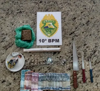 Com o homem, de 37 anos, a PM encontrou R$150 em notas diversas, e dentro do carro foram achas três facas, 23 gramas de cocaína, 197 gramas de maconha e 8 miligramas de crack.