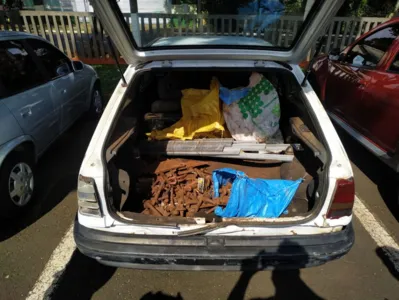 A PM informou que os suspeitos furtaram diversos objetos da linha férrea do bairro, como parafusos. O porta-malas do veículo utilizado pelos suspeitos já estava quase cheio. Os vigilantes flagraram o crime e seguraram os suspeitos até a chegada da equipe.