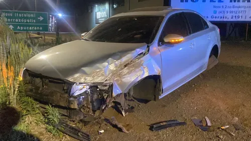 Um carro Volkswagen Jetta foi abandonado após se envolver em um acidente nesta sexta-feira (08), em Apucarana (PR). A ocorrência foi registrada na BR-369, próximo ao trevo de acesso à PR-170, entre a Cropfield e a Loja Conceição Country.