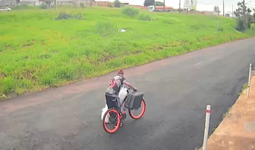 Pelas imagens do flagra, o crime aconteceu por volta das 15h30. Após deixar a casa, o bandido é visto na Avenida Zilda Seixas do Amaral seguindo com os itens furtados em uma bicicleta preta com os aros cor de rosa.