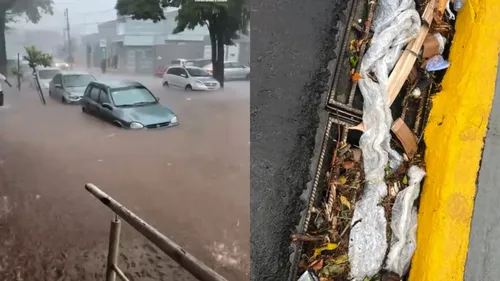 A forte chuva registrada na tarde de terça-feira (24) em Apucarana voltou a causar alagamentos no trecho da Rua Desembargador Clotário Portugal, em frente à Unidade de Pronto Atendimento (UPA), na área central. O local é conhecido por inundações e já havia passado por obras de drenagem. Segundo a Prefeitura, o novo episódio foi provocado pelo acúmulo de lixo descartado irregularmente, que bloqueou a passagem da água pelas bocas de lobo.