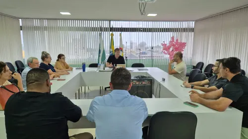 Diretores da Associação Comercial, Industrial e de Serviços de Apucarana (Acia), do Sindicato do Comércio Varejista de Apucarana (Sivana) e lojistas da área central participaram de uma reunião, na manhã desta sexta-feira (17), com o secretário de Cultura de Apucarana, Rodrigo Liévori, o Recife. O encontro ocorreu na Sala das Cerejeiras, no Cine Teatro Fênix, e discutiu a organização das festividades alusivas ao aniversário de 81 anos de Apucarana, que serão concentradas na Praça Rui Barbosa.