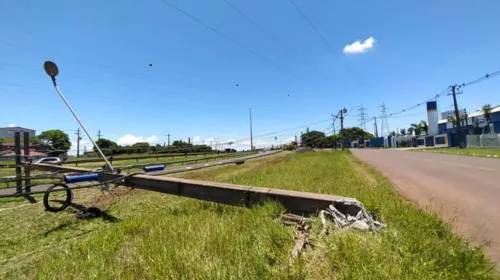 Nesta quinta-feira (10), uma carreta, que transportava uma máquina agrícola, acabou enroscando a traseira em um poste, ocasionando a queda da estrutura, na Avenida Zilda Seixas do Amaral, no Parque Industrial Norte em Apucarana. A região teve 1.102 unidades consumidoras com a energia desligada devido ao acidente.