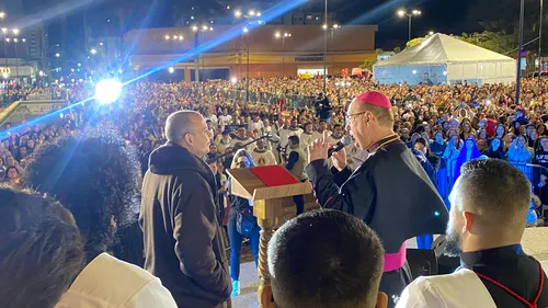 Segundo o Frei Gilson, é uma alegria imensa estar em Apucarana pela segunda vez em tão pouco tempo. Ele aproveitou para dar um recado para quem acompanhava a Santa Missa: “Vamos viver esta noite com a alegria do coração, com o máximo de intensidade que a gente puder”, afirmou o religioso.