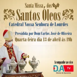 A missa dos Santos Óleos será realizada nesta quarta-feira (13), às 19h, na Catedral Nossa Senhora de Lourdes, em Apucarana. A celebração será presidida pelo Bispo Dom Carlos José de Oliveira e vai contar com a presença de aproximadamente 90 padres.