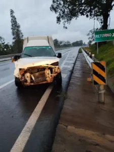 A PRF realizou o teste do bafômetro que apontou que o condutor do utilitário não havia ingerido bebida alcoólica. Ele contou que perdeu o controle da direção e atingiu a traseira da carreta. Chovia no momento da colisão. Parte da pista ficou comprometida durante o atendimento.