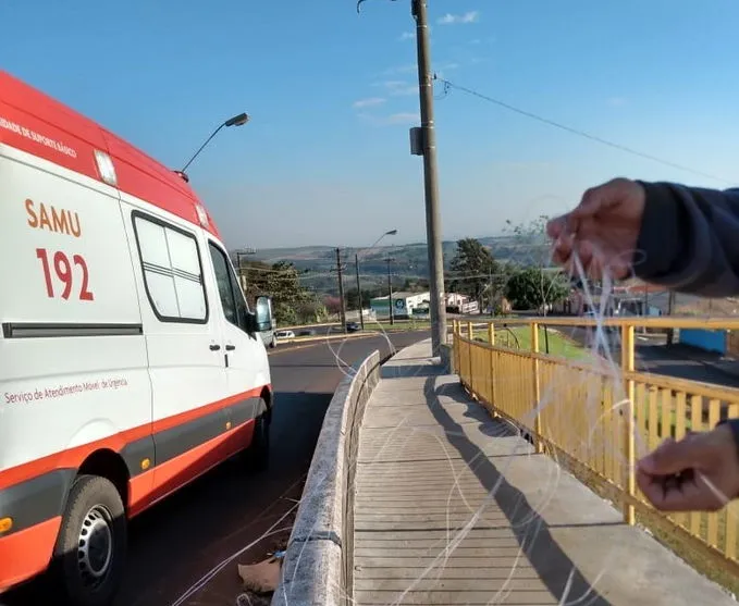 Um motociclista de 38 anos foi atingido por uma linha de pipa com cerol na manhã desta sexta-feira (17) em Apucarana. O acidente aconteceu por volta das 8h25 no viaduto da Vila Regina.