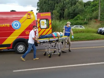 O trecho tem intenso tráfego pela Rodovia BR-376 e o trânsito precisou ser controlado durante o atendimento. O motociclista a princípio fraturou a clavícula. Veja: