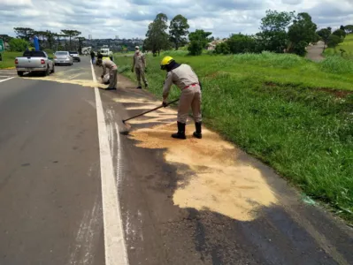O Corpo de Bombeiros esteve no local e espalhou pó de serra sobre o óleo que ficou na pista, para evitar outros acidentes.